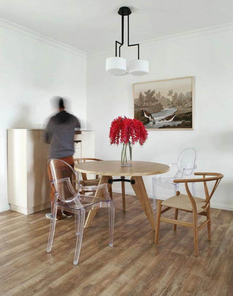 其实我挺赞成不过分于装修电视背景墙和沙发背景墙的,其实简单的装饰反而会让人感到舒服,简单的挂画和家具无不显示着北欧风的简单和雅致。